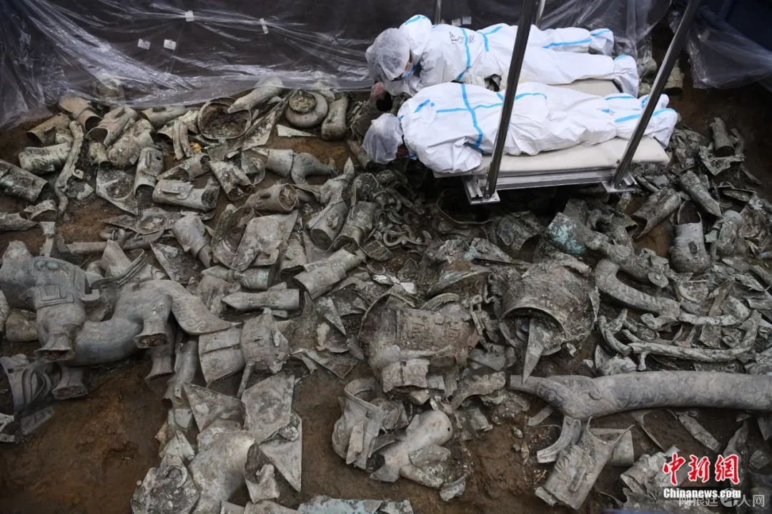 3号祭祀坑出土文物场景。四川省文物考古研究院供图