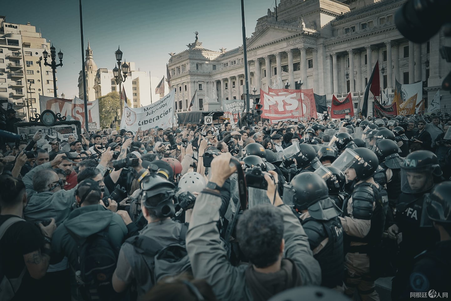 不满米莱否决退休金调整法案 社会组织示威游行并同警方对峙