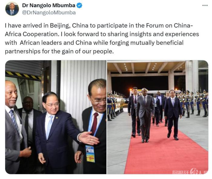 纳米比亚总统姆本巴发文表示,期待在峰会上同非洲各国、中国展开交流,并建立互惠互利的伙伴关系,造福各国人民。