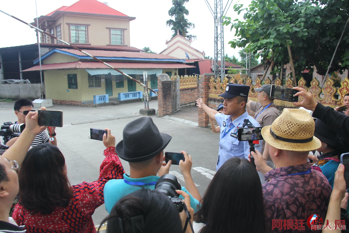 (图为媒体代表们在中缅边境线参访)