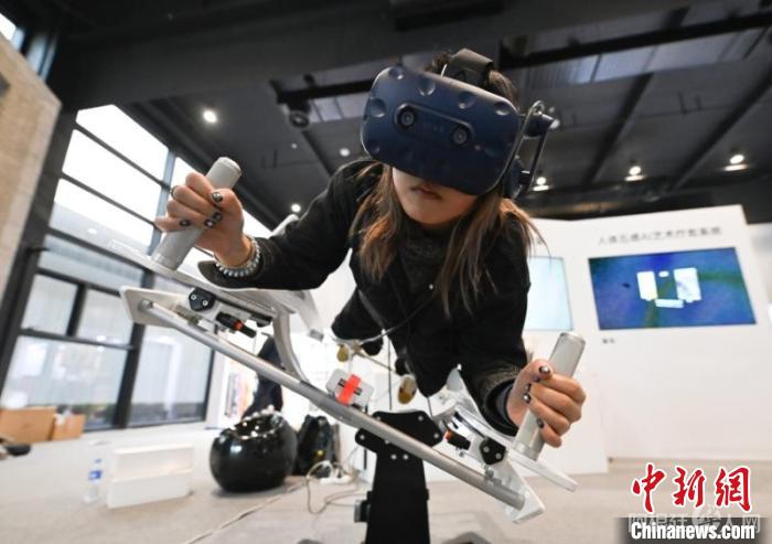 11月21日,参观者体验融合AIGC的飞行体感AI艺术疗愈系统。王刚 摄