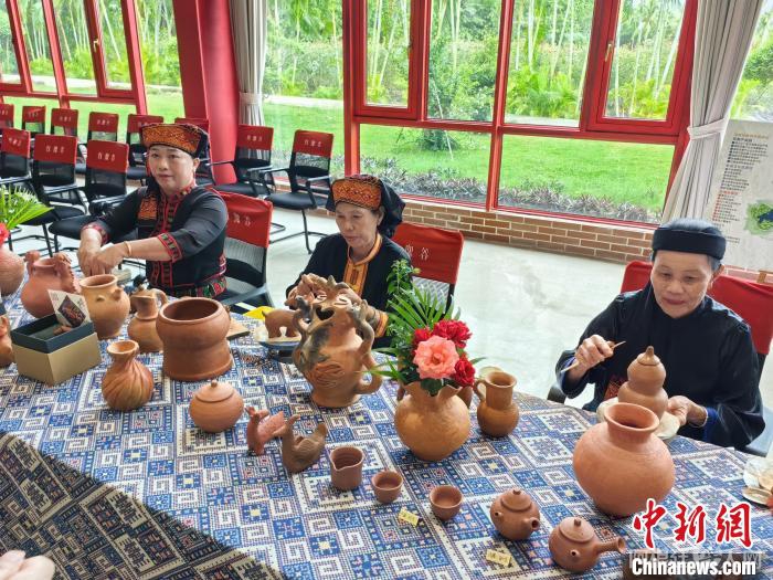 黎族同胞展示黎族原始制陶。 范宇斌 摄