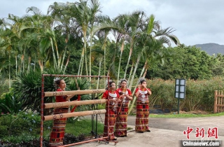 中新网三亚11月25日电(范宇斌)25日,记者跟随参加中华人民共和国第十二届少数民族传统体育运动会的各民族同胞代表走进海南省三亚市博后村、亚龙湾国际玫瑰谷,体验黎族风情,赴一场“玫瑰之约”。