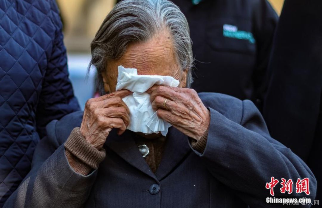 今年12月1日,在侵华日军南京大屠杀遇难同胞纪念馆举行的南京大屠杀死难者家庭祭告活动上,南京大屠杀幸存者夏淑琴抹去泪水。中新社记者 泱波 摄