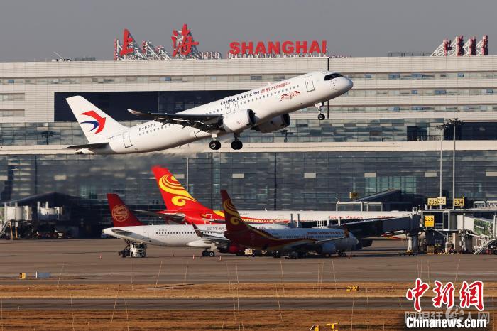 2025年1月1日8时21分,身披“闪耀中国红”外衣,C919执飞的东航“上海虹桥—香港”航班顺利首航,正式开启中国国产大型客机在地区航线上执飞定期商业航班的新航程。