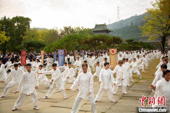 2023年10月23日,众多太极爱好者来到武当山习武。张倩龙 摄