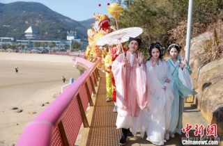 1月29日,浙江宁波,游客扮演“白蛇传传说”中的主人公。 象山文旅供图