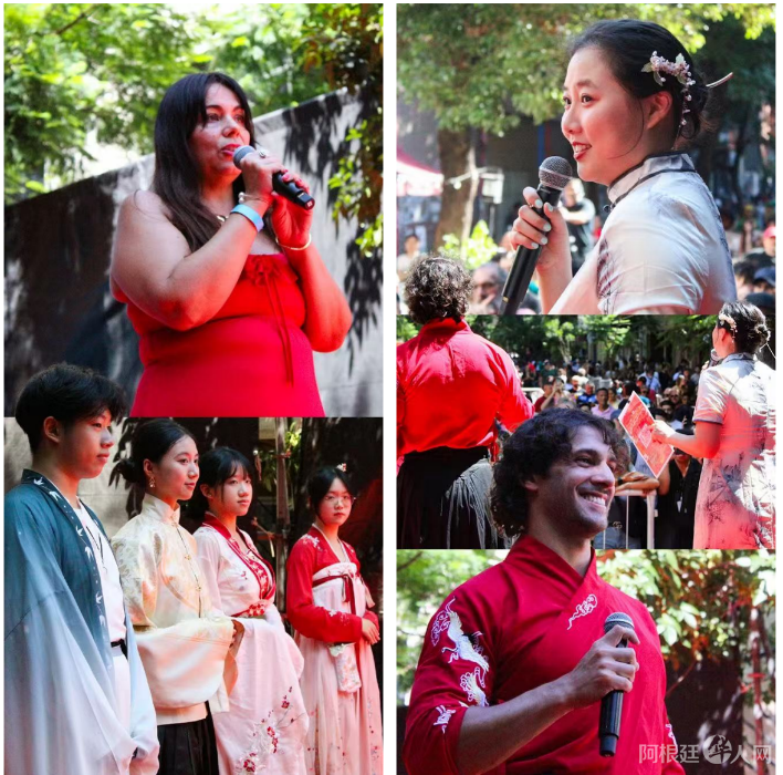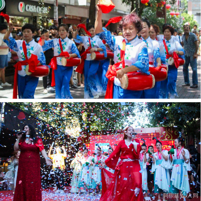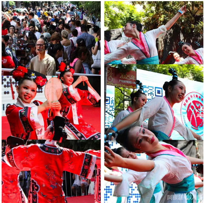 阿根廷华文教育基金会静雅艺术中心等艺术团体呈现的中国各地民族舞蹈依次登场,瞬间将现场气氛推向巅峰,让观众深深领略到中华文化的源远流长、博大精深。中阿艺术家们字正腔圆、声情并茂演绎的中文歌曲,令观众如痴如醉,充分感受到中华文化的独特韵味,赢得现场观众的连连喝彩。