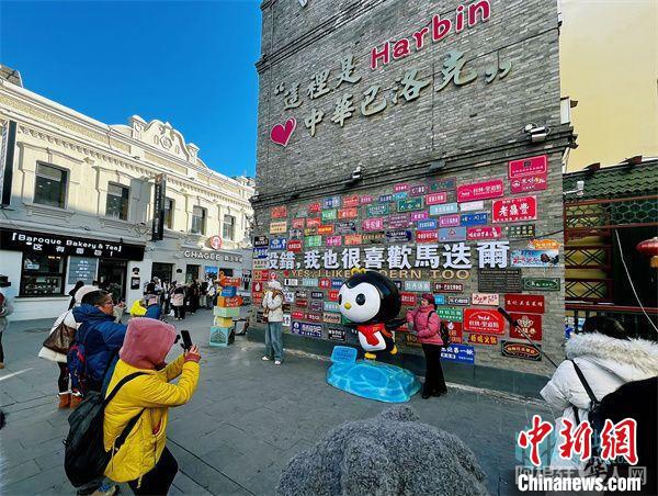 游人们在中华巴洛克历史文化街区拍照。亚冬会执委会 供图