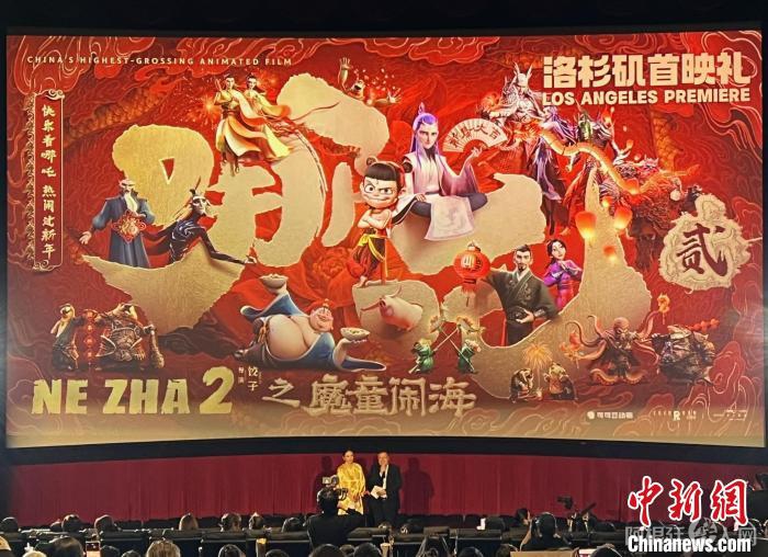 当地时间2月8日,中国影史票房冠军《哪吒之魔童闹海》(Ne Zha 2)洛杉矶首映礼在美国好莱坞中国剧院举行。 中新社记者 张朔 摄