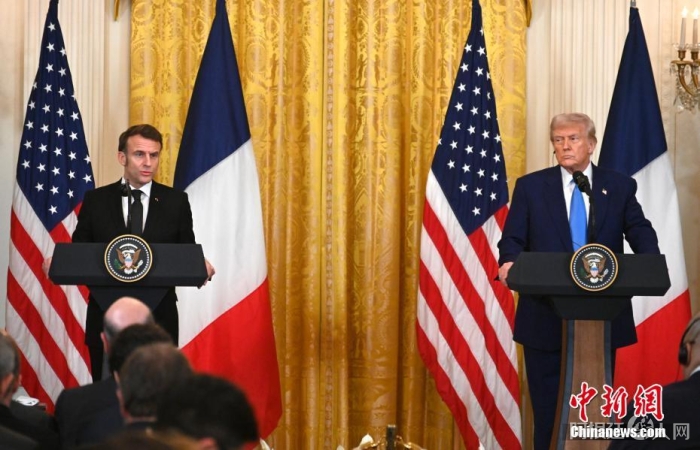 中新网2月25日电 综合外媒报道,当地时间2月24日,法国总统马克龙到访美国,在白宫与美国总统特朗普举行会晤,寻求对乌克兰的共同支持,并推动跨大西洋双向投资。