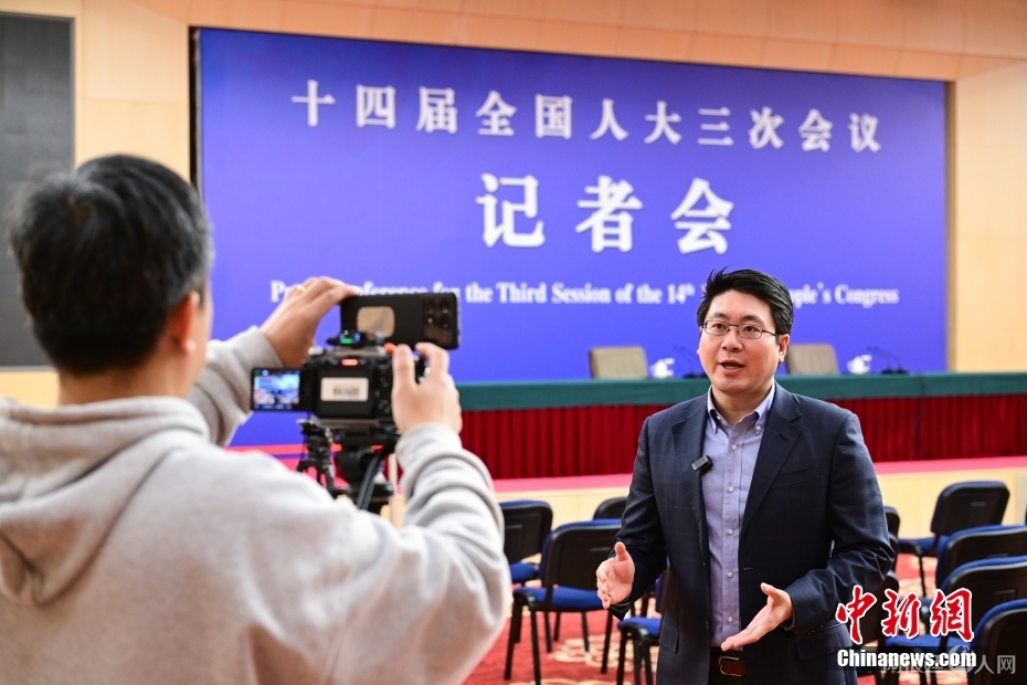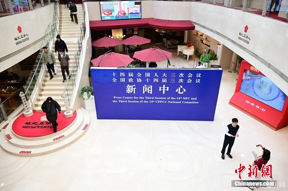 2月27日,在2025年全国两会即将召开之际,位于北京梅地亚中心的全国两会新闻中心正式启用。据悉,目前已有3000多名中外记者报名采访全国两会,其中境内记者2000多名,港澳台记者和外国记者1000多名,记者报名数量比去年有进一步增长。图为媒体记者在新闻中心采访拍摄。