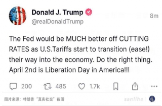 美国总统特朗普在社交媒体上直言,美联储应该“做正确的事”——降息。