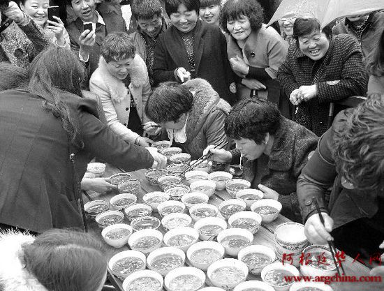 女子参加吃臊子面大赛 三分钟吃19碗(图) 国内新闻 • 2015-03-20 14:53• 收藏本文 kzN阿根廷华人网 臊子面大赛 转载本网稿件,原则上需要书面授权,不得篡改稿件主题。本网随时有权要求第三方停止侵权行为。 本网所载内容或图片,若涉及侵权,请联系删除。 20 ___________ 2015/03 女子参加吃臊子面大赛 三分钟吃19碗(图) 臊子面大赛臊子面让大家过足了瘾数百碗岐山臊子 长长的桌案上,数百碗岐山臊子面飘溢着诱人的香味,随着一声令下,十几位食客竞相端碗“吸溜”,几分钟内... [ 微信长按识别二维码或扫码查看分享内容 ]