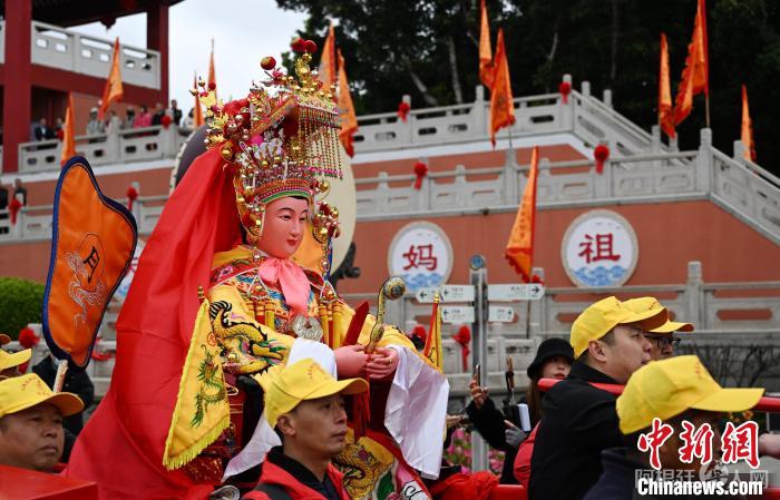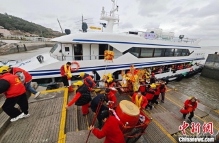 3月29日,正值农历三月初一,“天下妈祖回娘家”启动仪式在福建省莆田市湄洲妈祖祖庙天后广场举行,来自海内外的一百多家妈祖文化团体代表,共计近万名嘉宾汇聚一堂,共襄盛举。天下妈祖,祖在湄洲。相传,妈祖的诞辰为农历三月二十三日。每年的妈祖诞辰日前后,海内外的妈祖信众都会翻山越岭,远道而来,恭送分灵妈祖回到湄洲岛谒祖进香,以“回娘家”的方式寻根问祖,这一习俗被坊间亲切地称为“天下妈祖回娘家”。图为各地宫庙代表陆续抵达福建湄洲岛码头。中新社记者 吕明 摄