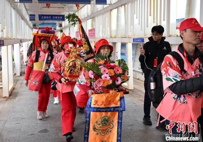 图为各地宫庙代表陆续抵达启动仪式现场。中新社记者 吕明 摄