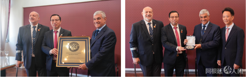 阿根廷联邦警察总局路易斯·亚历杭德罗·罗莱(Luis Alejandro ROLLE)局长和阿根廷联邦警察大学研究院的罗道夫·奥斯卡·古铁雷斯(RODOLFO OSCAR GUTIÉRREZ)校长及阿根廷华文教育基金会会长刘芳勇为毕业班代表颁发证书。此次活动不仅是荣誉的授予和新征程的开启,更是一次心灵的深度沟通与文化的精彩交融。它激励着更多阿根廷民众积极学习中文,传承中华文化,增进中阿友谊,为构建人类命运共同体贡献独特而重要的力量。相信在社会各界的共同支持和不懈努力下,阿根廷的华文教育必将迎来更加灿烂的明天!
