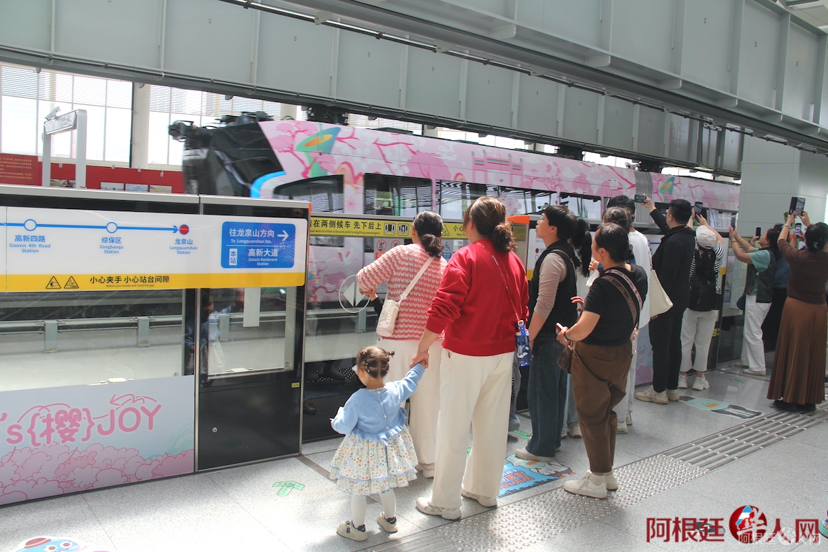(图为游客在车站打卡)