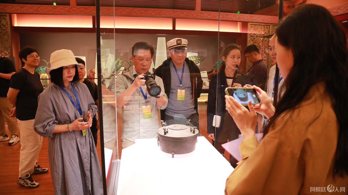 (图为记者们在参访荆门市博物馆)