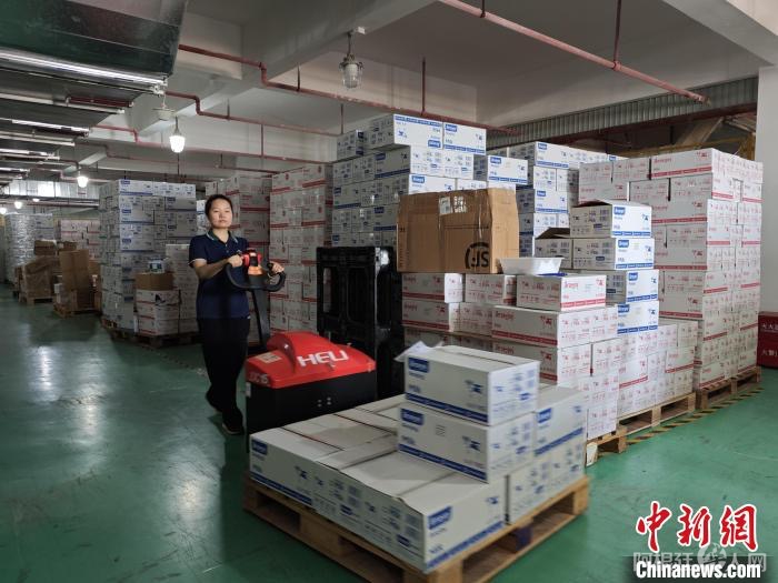 5月23日,海口综合保税区内,海南鲲鹏云仓实业有限公司工作人员正忙着发送跨境电商进口产品。 中新社记者 王子谦 摄