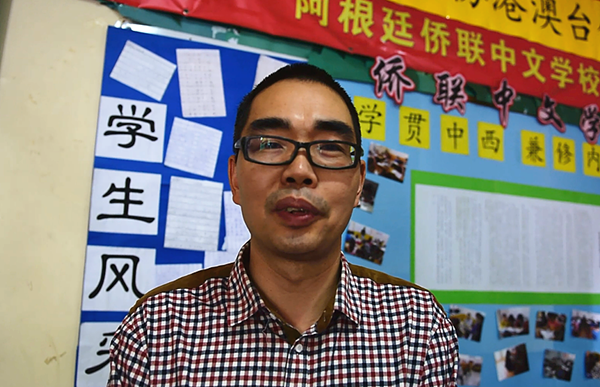 阿根廷侨联中文学校校长刘芳勇也发表了感慨,他说:“感谢华助中心严祥兴,感谢书法家协会严昌庭,感谢他们两位对我们华文教育的支持,希望更多的侨团侨领,一如既往地支持我们华文教育,谢谢大家!”