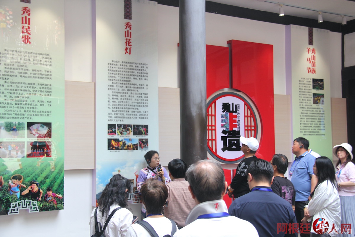 最后,参访团来到西街非遗体验馆。馆内面积2400平方米,展示了秀山花灯、秀山民歌、苗族银饰、紫砂石壶、土家织锦等非遗项目,并配备“秀山县非遗数据库”查询系统。多位华文媒体代表现场观看了傩狮表演,并用镜头记录下非遗传承人的精湛技艺。“从高科技新材料到跨境电商,再到活态非遗,秀山让我们看到了一个开放、现代又不失传统的‘新重庆’。”