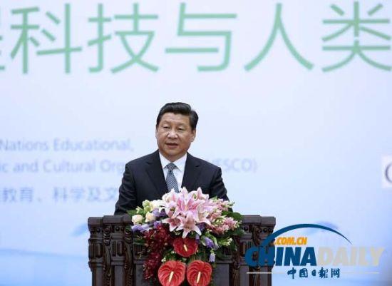 6月3日,国家主席习近平在北京人民大会堂出席2014年国际工程科技大会并发表题为《让工程科技造福人类、创造未来》的主旨演讲。(图片来源:新华社)