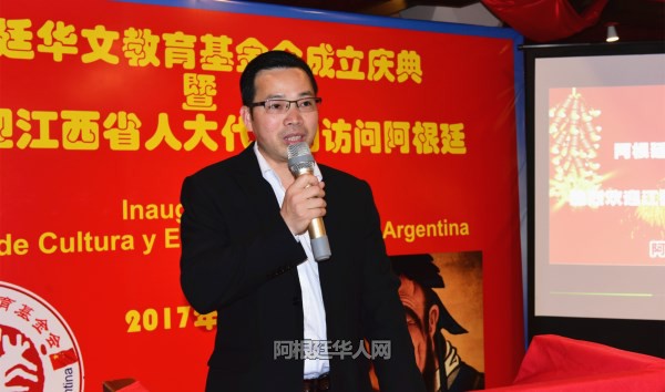 刘芳勇继续说道:“我愿与各位仁人志士,各位鸿儒贤达一起,为阿根廷的华文教育事业贡献我们的爱心和力量;为中华文化的弘扬与发展贡献我们的爱心与力量;为中华民族的伟大复兴,贡献我们的爱心与力量。”