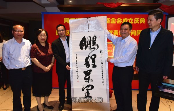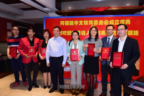 江西省人大常委会马志武副主任,江西省侨联张知明主席,中国驻阿根廷大使馆陈志军侨务领事,阿根廷国会议员秘书Romina女士,阿根廷中国和平统一促进会会长罗超西,阿根廷华文教育基金会首任会长刘芳勇等人,为阿根廷华文教育基金会揭牌。