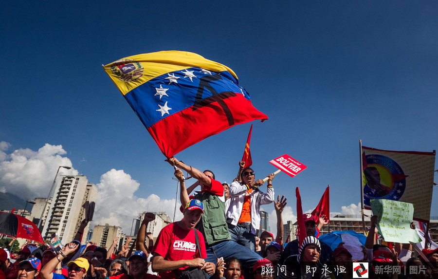当地时间2014年12月15日,数千委内瑞拉民众在街头举行反美游行。