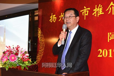 扬州市政府访阿代表团团长、扬州市委常委、常务副市长陈杨首先致欢迎词,他说:“阿根廷是南美洲的重要国家,布宜诺斯艾利斯是阿根廷的政治、经济、科技和文化中心。我们举办这次推介会,主要目的是介绍扬州城市、旅游以及产业发展情况,寻求与阿根廷在更大范围、更宽领域、更深层次的合作。”