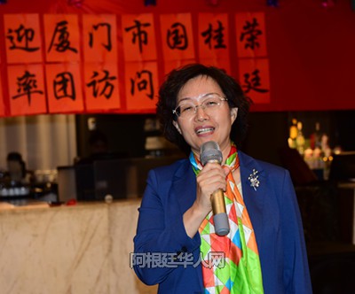 国桂荣副市长继续表示:“我们厦门是一个初具规模的外向型经济城市,市政建设和自然环境一流,经济活跃,人文社会环境优良,具备天然海峡人缘优势,未来发展不可估量。在厦门举办的中国(厦门)投资贸易洽谈会(夏洽会)、海峡两岸(厦门)文化产业博览交易会(厦门文博会)、中国(厦门)国际休闲旅游博览会(厦门旅博会)引起世界瞩目。我们希望与旅阿华人和旅阿福建乡亲共同合作,开创更加美好的未来。”
