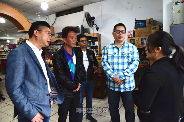 (阿根廷华人网11月20日讯 柳 军/文图)昨晚20时许,布市华人超市业主何先生,在店门外被一名阿根廷男子开枪击中腰部,歹徒没有抢夺钱财随即逃离现场,何先生被送往医院接受治疗,没有生命危险。今天中午,中国驻阿使馆陈志军领事,阿根廷华助中心执行主任严祥兴,副主任曾强、何文强,阿中投资贸易促进会副会长杨俊等旅阿侨领,来到被害人超市看望慰问了受害者家属,帮助他们解决难题。