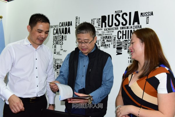 (阿根廷华人网4月12日讯 柳 军/文图)昨天,广东广播电视采访团抵达阿根廷首都,拍摄粤籍华人在阿创业故事,展现广东籍乡亲他乡奋斗历程。采访团成员首先来到中国城大中华食品购物中心采访拍摄华商经营状况,在阿根廷广东商会采访团成员与余永辉会长等人亲切交流,共商合作共谋发展。