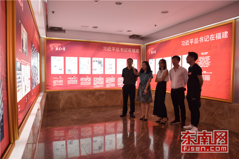 阿根廷华人网董事长、阿根廷华文教育基金会会长刘芳勇(右),阿根廷福旺食品发展有限公司总经理林海洪(左)等参观福建日报社东南网。