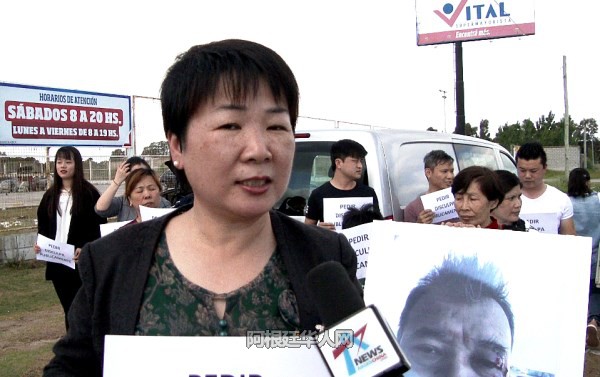 日前,Bahia Blanca华人商会名誉会长卢素兰,在Vital公司抗议现场接受媒体采访。