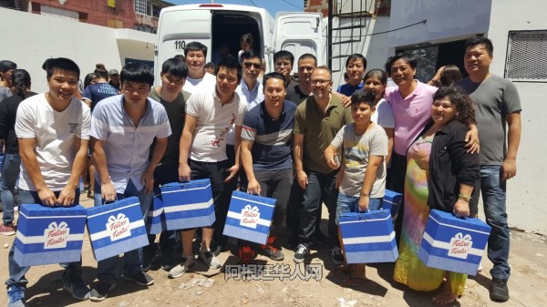 (阿根廷华人网12月15日讯 柳军/文、洪崇仁/图)圣诞节前夕,由布市议员袁建平组织的阿根廷华侨华人为当地社会送温暖、献爱心系列活动全面启动。今天上午,在袁建平议员的带领下,阿根廷S&T华商联谊会会长陈德祥及班子全体成员,携带圣诞礼盒来到布省2月3号市,向居住在这里的贫困人群赠送圣诞礼物,表达旅阿华人对他们的关爱之情。