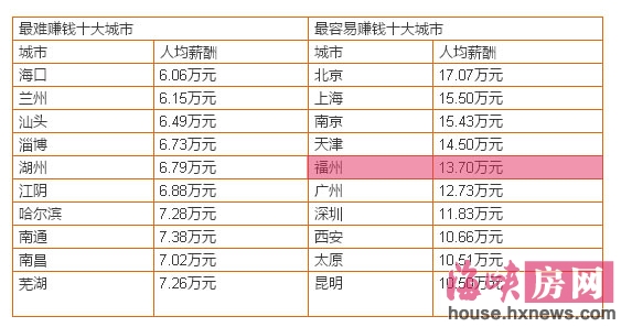 以下是由《投资时报》统计得出“中国最难赚钱的城市排行榜”,和今年上半年由人社部发布《薪酬发展报告(2013—2014)》中得出的“中国最容易赚钱的十大城市”。我们总是在抱怨赚钱难,生活压力大。这或许和你所在城市有关。数据虽然不是最新,发生变化,但仍具有很大参考价值。快来看,你所在城市上榜了么?
