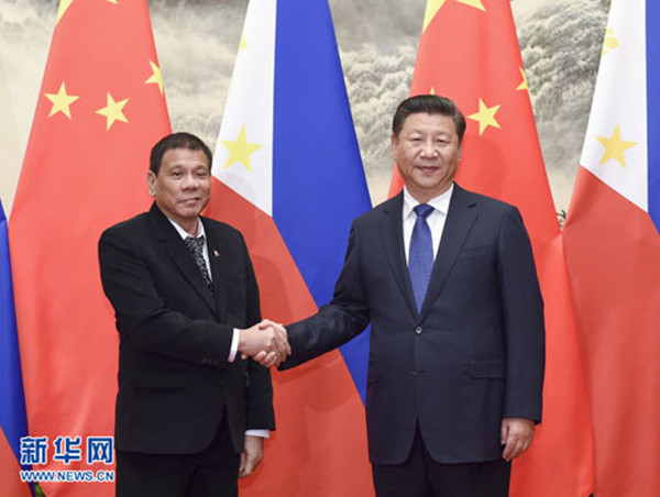 国家主席习近平20日在人民大会堂同来访的菲律宾总统杜特尔特举行会谈。双方一致同意,从两国根本和共同利益出发,顺应民众期盼,推动中菲关系实现全面改善并取得更大发展,造福两国人民。
