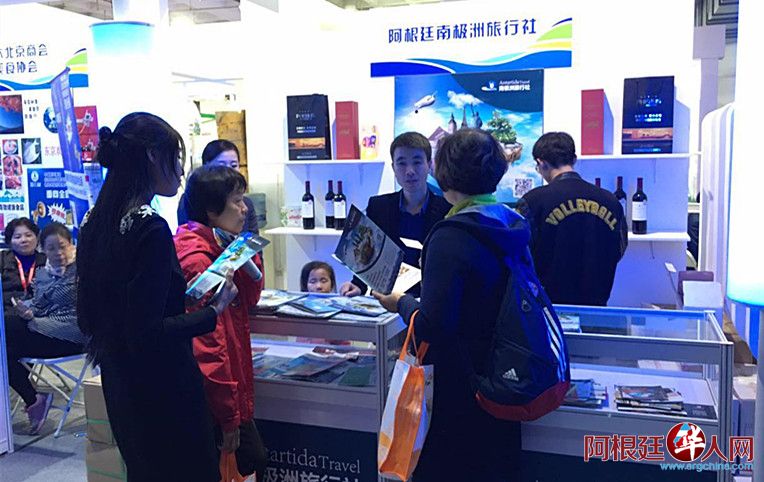 阿根廷南极洲旅行社展台前,参观、咨询者络绎不绝。