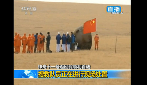 神舟十一号飞船返回舱成功着陆 两名航天员安全返回