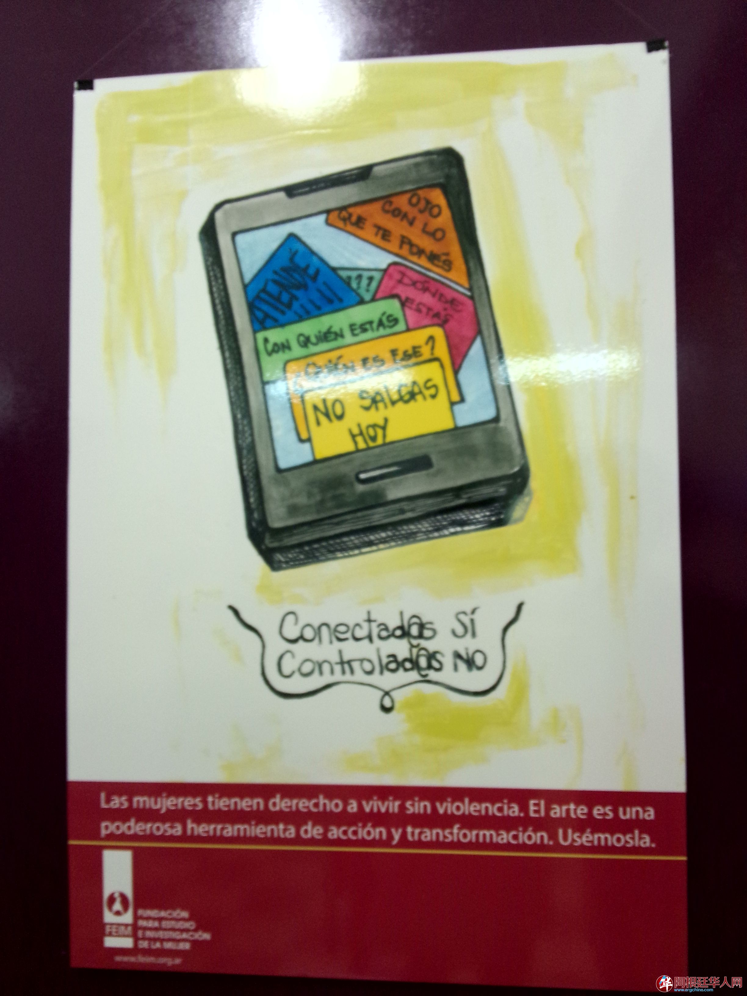 (阿根廷华人网5月22日讯 马巧玲/图 、文)5月21号由阿根廷当地妇女保护工作组和阿根廷妇女儿童协会联合举办的“不再对妇女儿童施暴”当代艺术展于布市语言中心开展。本次艺术展以“平等与和谐”为主题,展出了十几幅由不同艺术家创作的作品。此次艺术展策展人Claudia介绍:“本次展览,从艺术的角度探讨妇女与儿童的权利,以及争取更多权利的可能性。”。