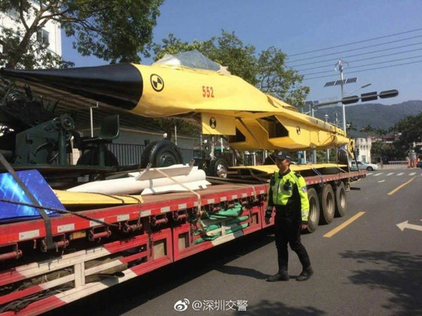 4月3日中午,@深圳大鹏交警 铁骑在鹏飞路巡逻时,发现三辆运载“军火”的货车在路上停着,影响交通。