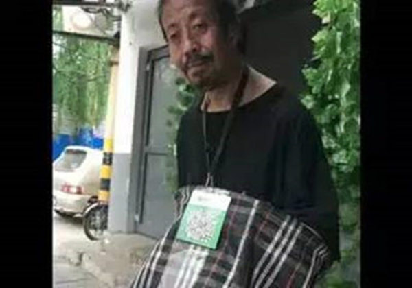 乞讨老人自带二维码淡定求扫,路人表示:没有一点点防备