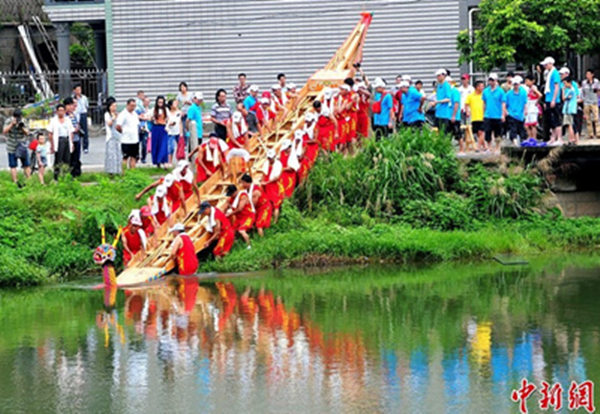 福建长乐三溪新龙舟下水 夜赛龙舟薪火相传