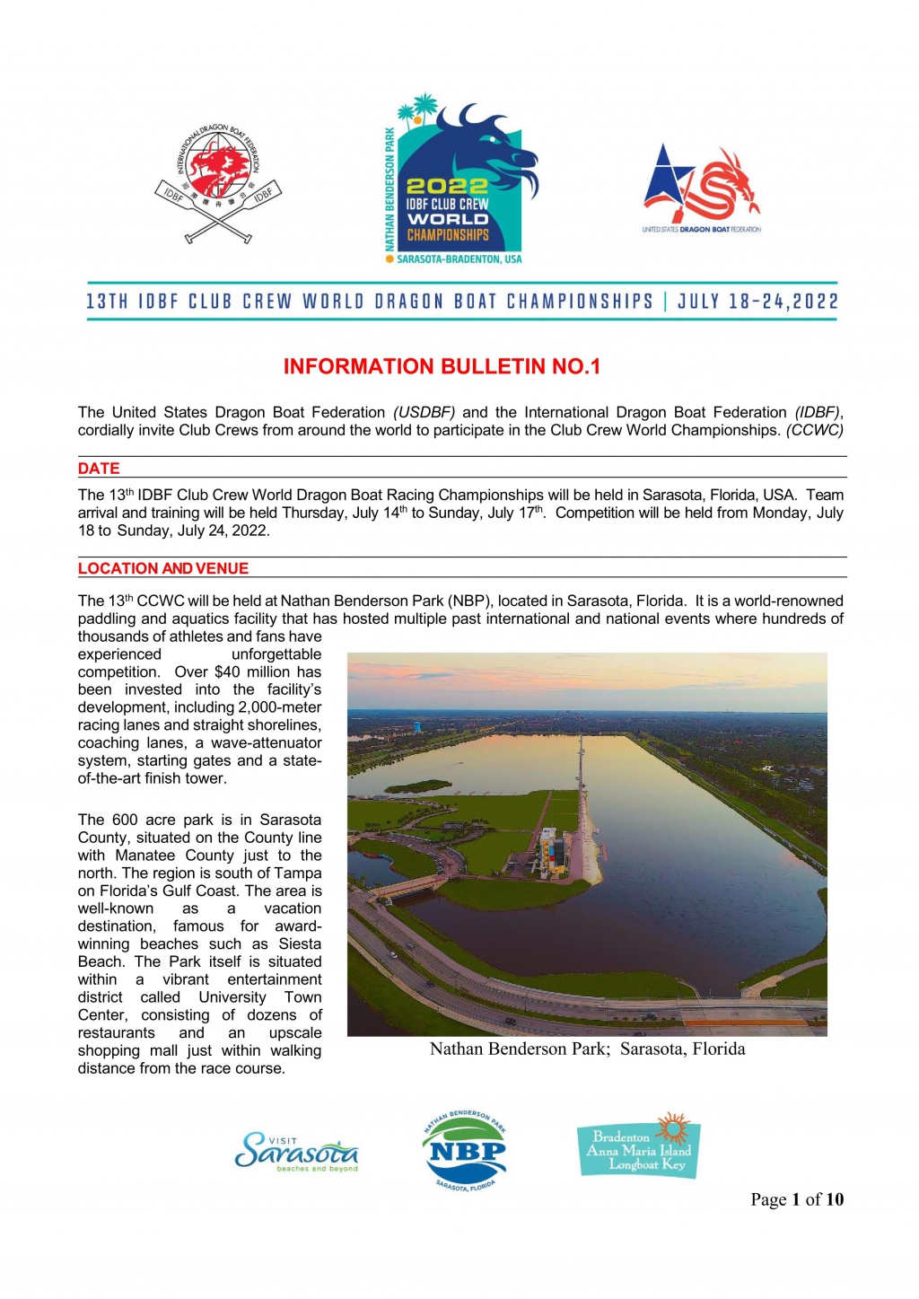 阿根廷龙舟协会(AABD)很荣幸的收到了国际龙舟联合会(IDBF)和美国龙舟协会(USDBF)的邀请,参加即将在 2022 年 7 月 13 日至 7 月 24 日萨拉索塔(Sarasota),弗罗里达州(Florida), 美国(USA) 举办的第十三届国际龙舟大赛。