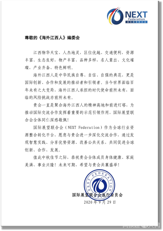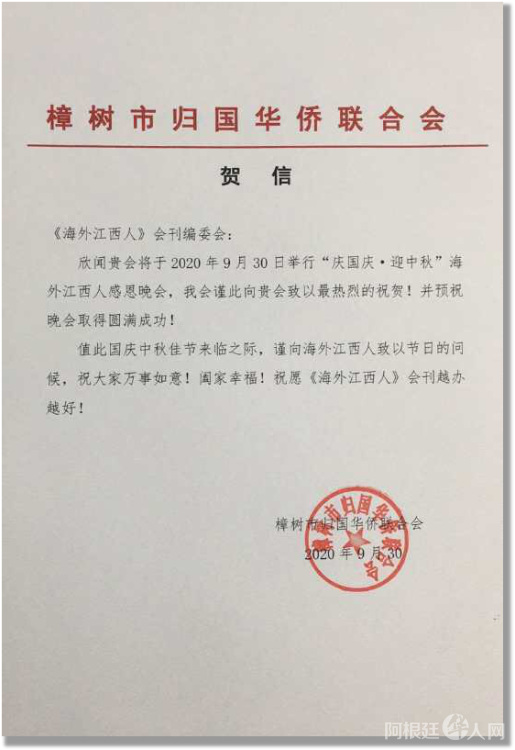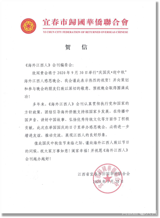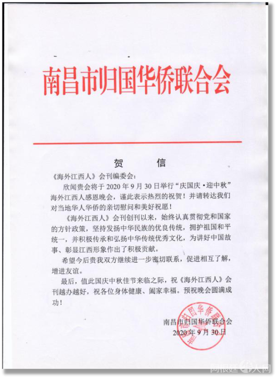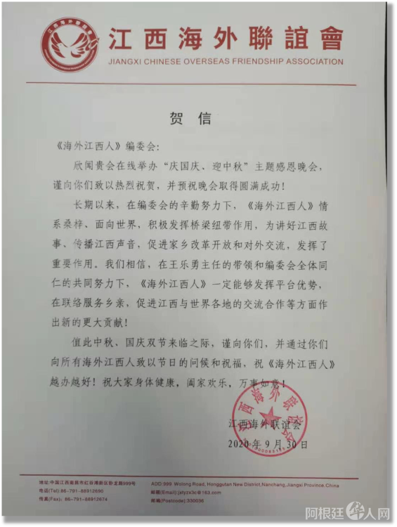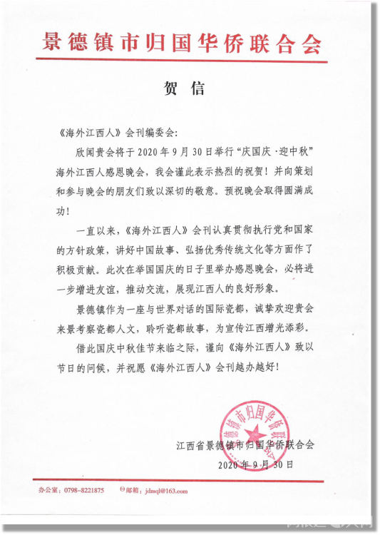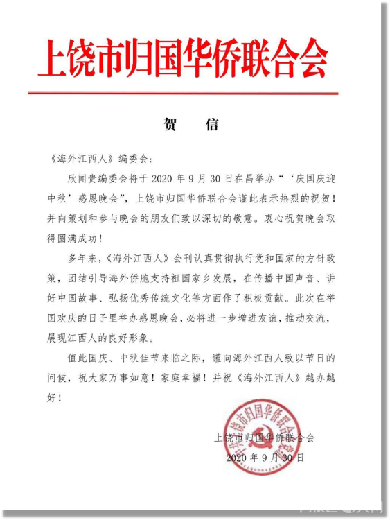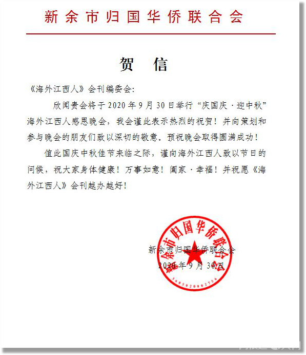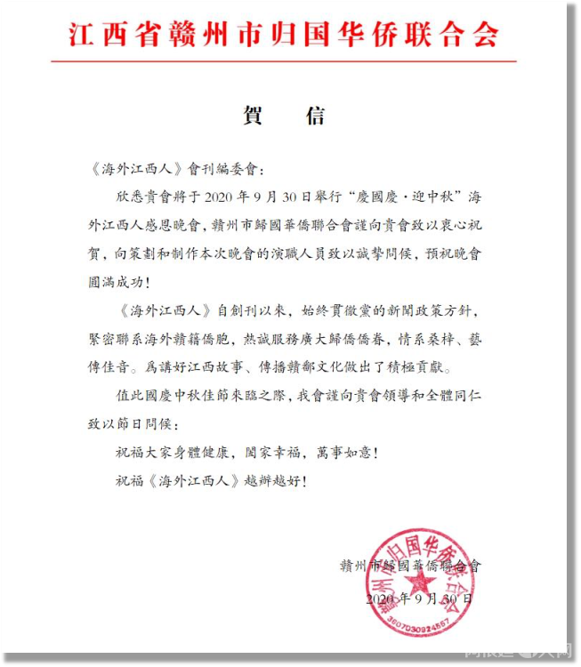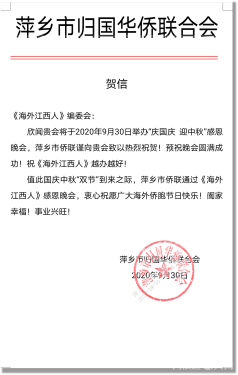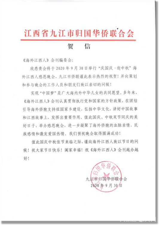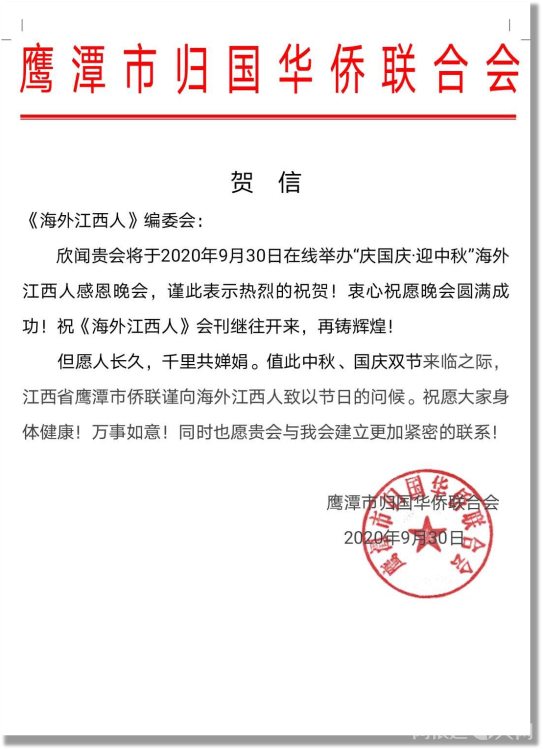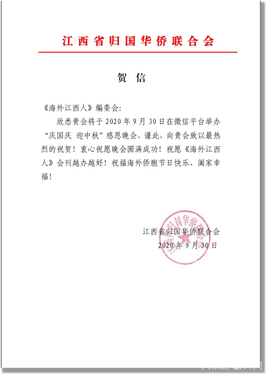 感谢江西省侨联和海联会以及十一个设区市侨联贺电鼓舞!