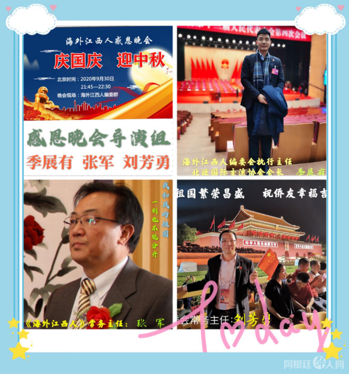 2020年9月30日晚上,正值国庆、中秋前夜,海外江西人抓住双节同日的难得机会,在《海外江西人》联谊群举行国庆中秋感恩受众暨第32期会刊推介晚会,吸引了世界各地200多位群友踴跃参加。