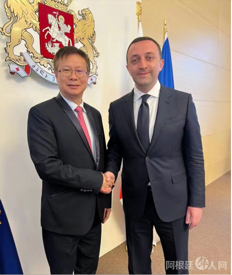 庆典结束后,格鲁吉亚总理伊拉克利·加里巴什维利阁下亲切会见了王乐勇一行,双方进行了十分友好的谈话。出席会见的还有格鲁吉亚阿扎尔自治共和国州长Tornike Rijvadze阁下和阿扎尔自治共和国管理局局长Tinatin Zoidze女士。