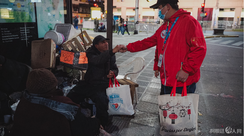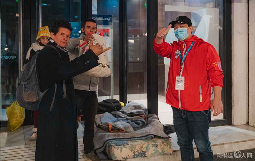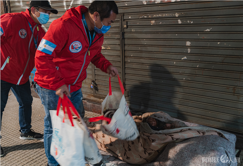 据阿根廷华人义工协会何雄明介绍,疫情期间,义工团队自发组建各种公益群,组织捐款捐物工作,并把善款汇到阿根廷华人义工协会,由协会购买物资,对接当地慈善机构,把抗疫抗寒物品捐赠给真正有需要的当地民众。何雄明指出,两晚一共为120多名街头露宿人员送上了毛毯,捐赠的爱心物资价值14万多阿币。